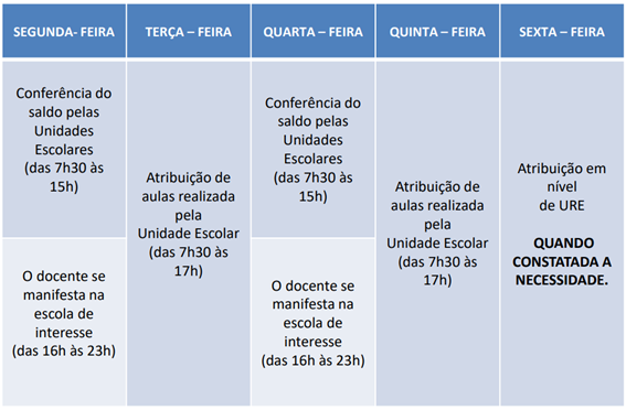 IMPORTANTE: A alocação nas vagas do Programa de Ensino Integral – PEI, a atribuição de Programas e Projetos da Pasta bem como do Itinerário Formativo Técnico Profissional seguirão acontecendo mediante fluxo determinado em editais publicados no site da Unidade Regional de Ensino.
